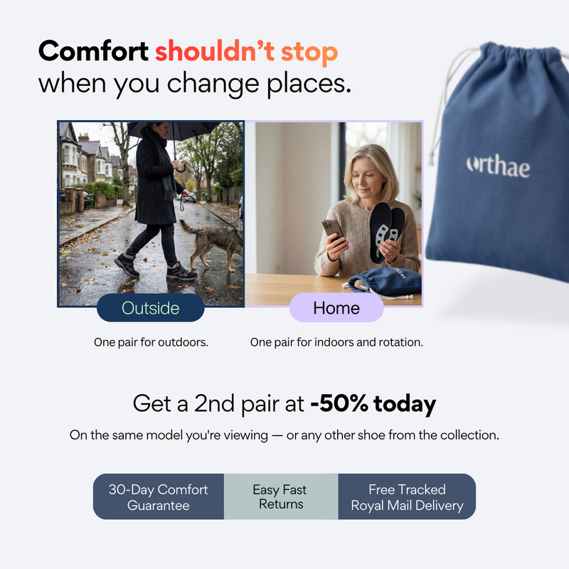 Orthae shoes are designed to reduce pressure and improve walking comfort, especially for women who experience tired, sore or heavy feet after a long day.