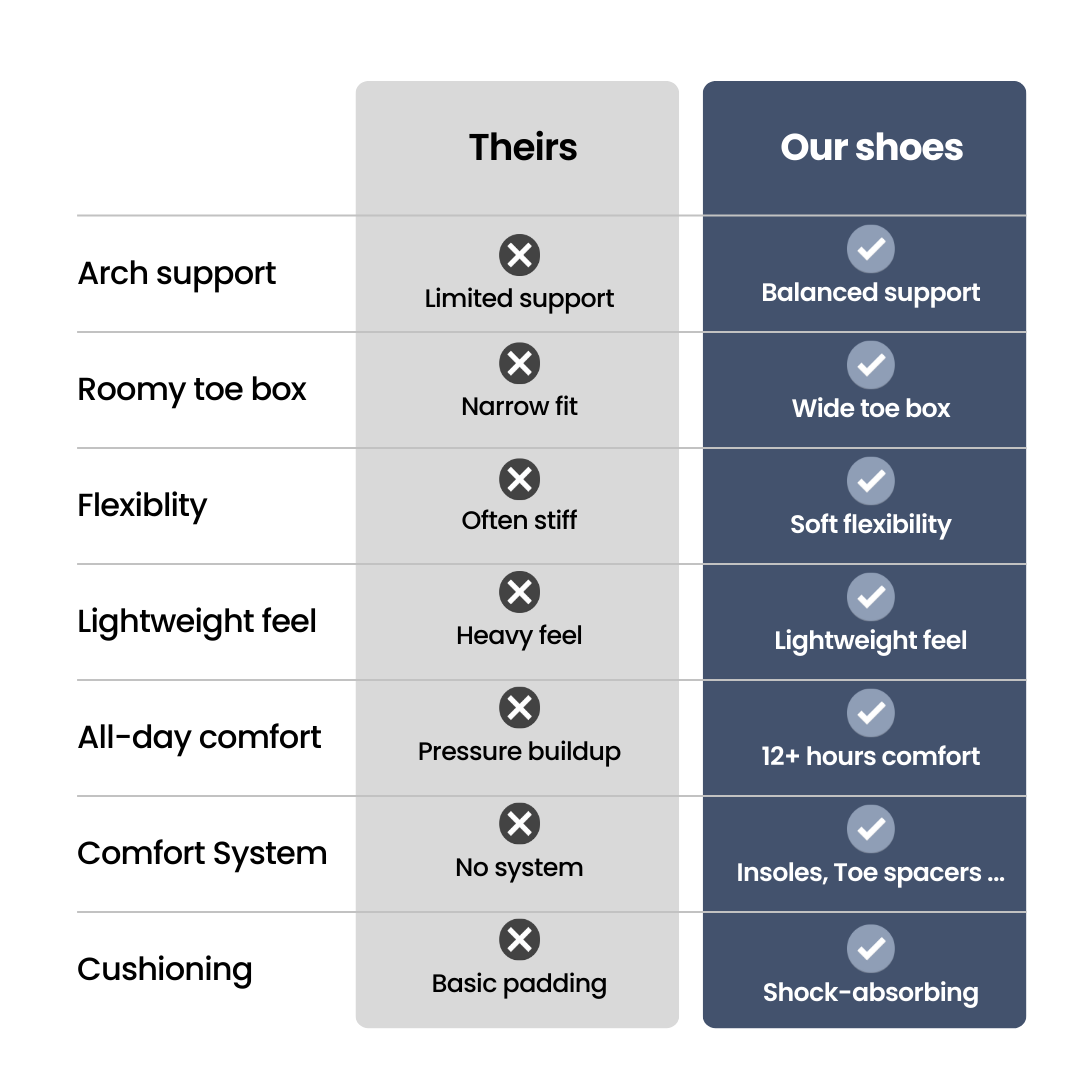 Every detail is designed to reduce pressure, improve comfort, and help your feet feel better throughout the day.